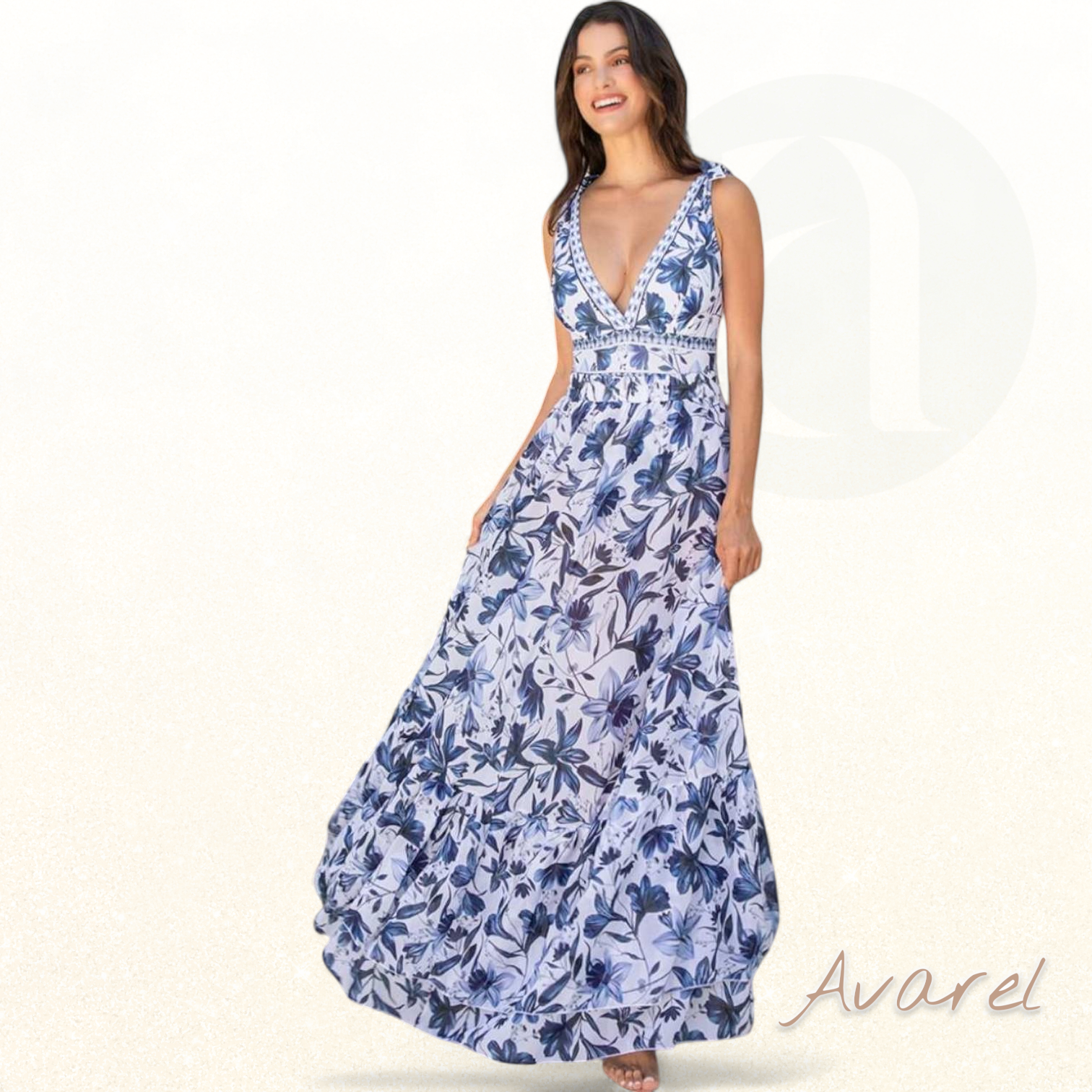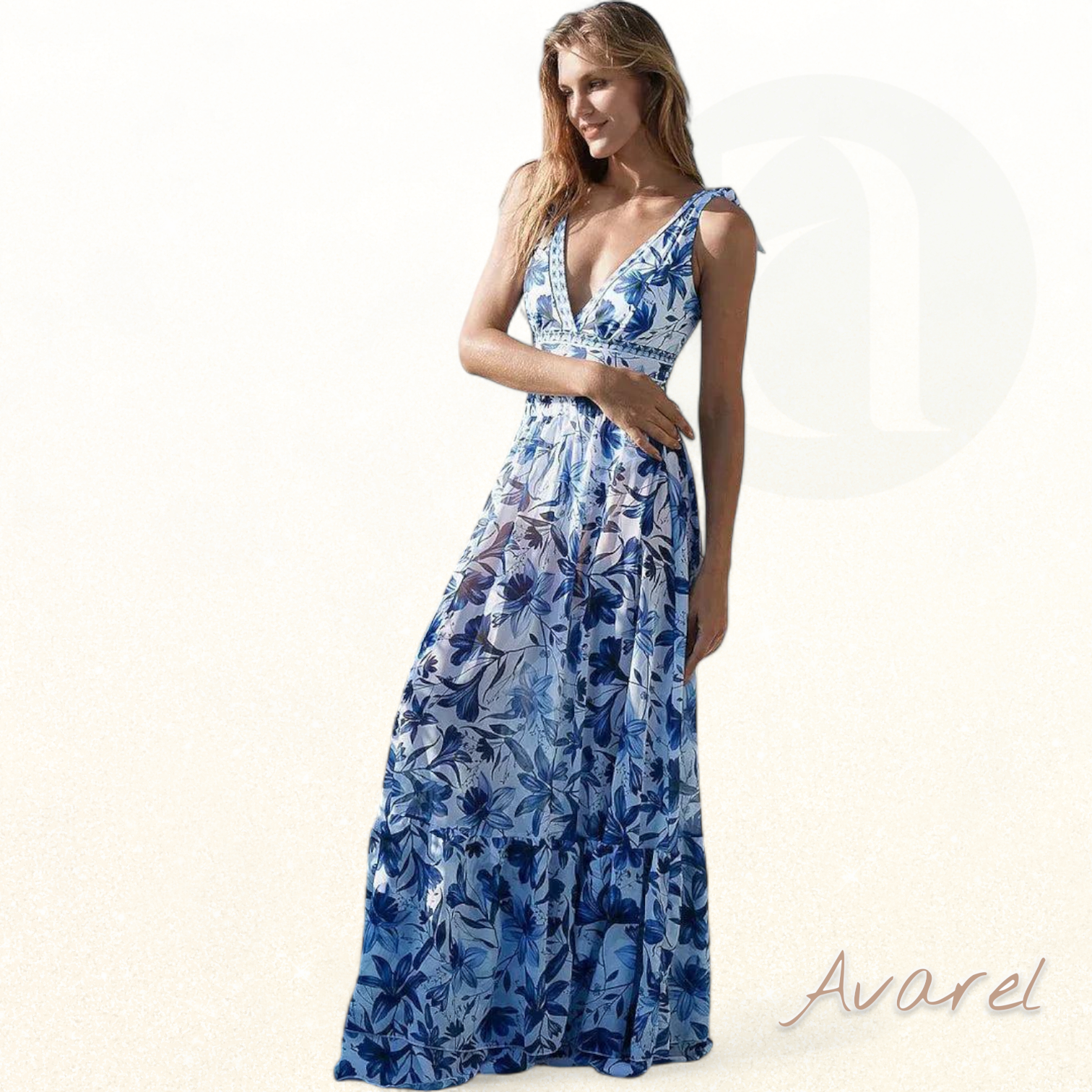 Tauchen Sie ein in mühelose Schönheit und bringen Sie Ihre Tage zum Strahlen mit diesem blauen Maxikleid mit Blumenmuster – perfekt für jeden Sommerausflug.