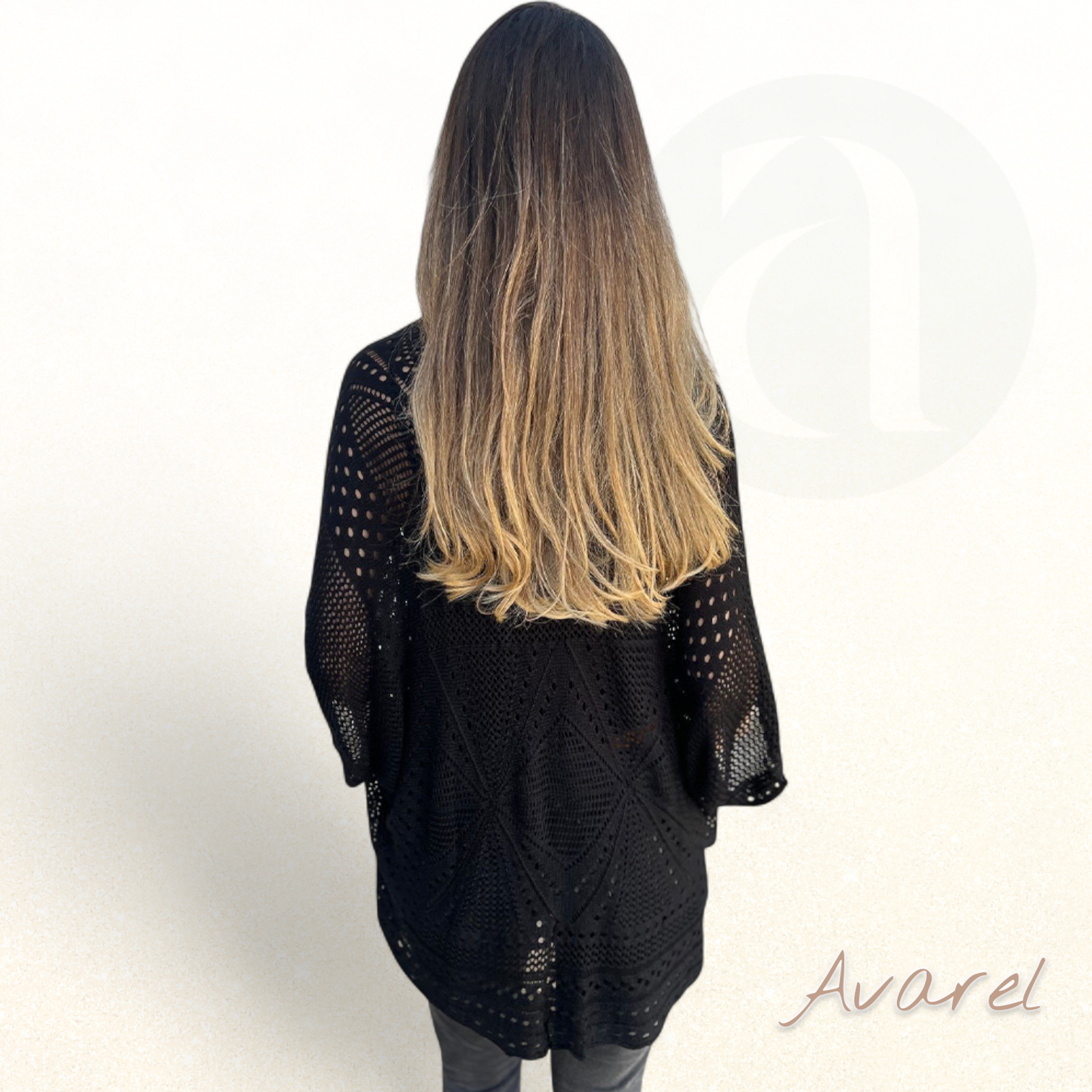 Stilvolle Mantel im Lochstrick-Muster für en elegante Look