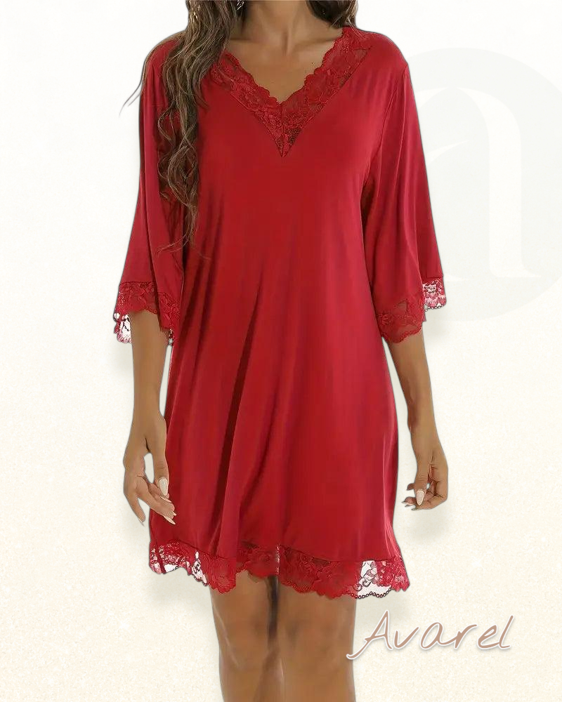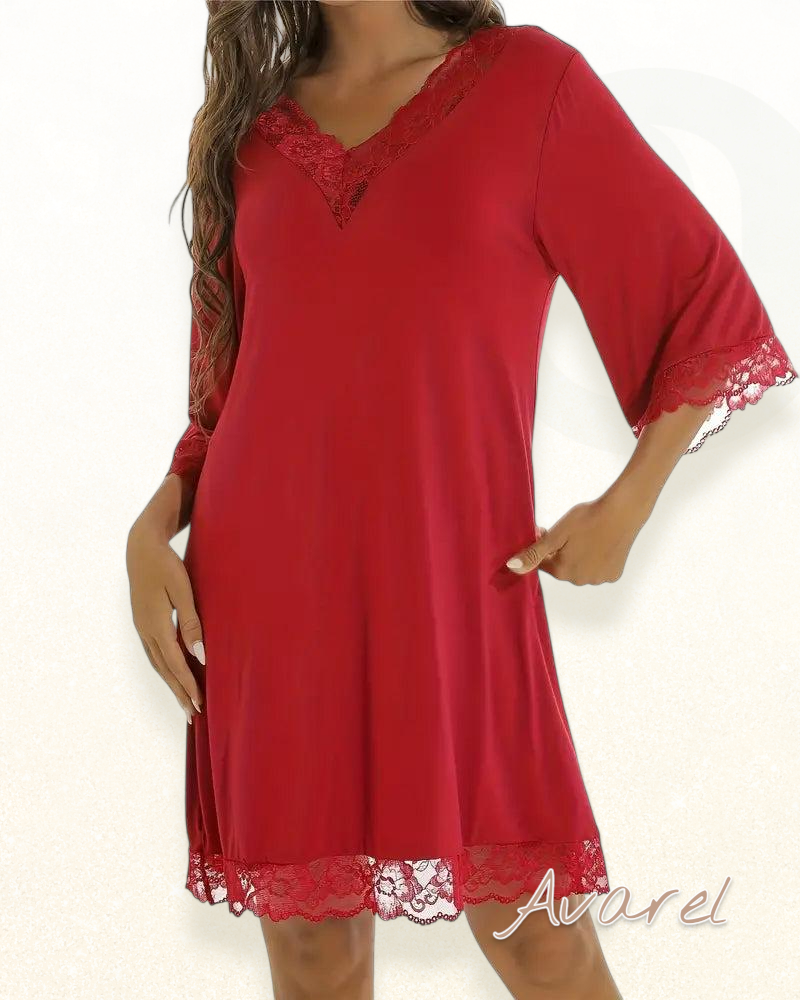 Elegantes V-Ausschnitt Kleid mit verführerischem Spitzen-Einsatz für stilvolle...