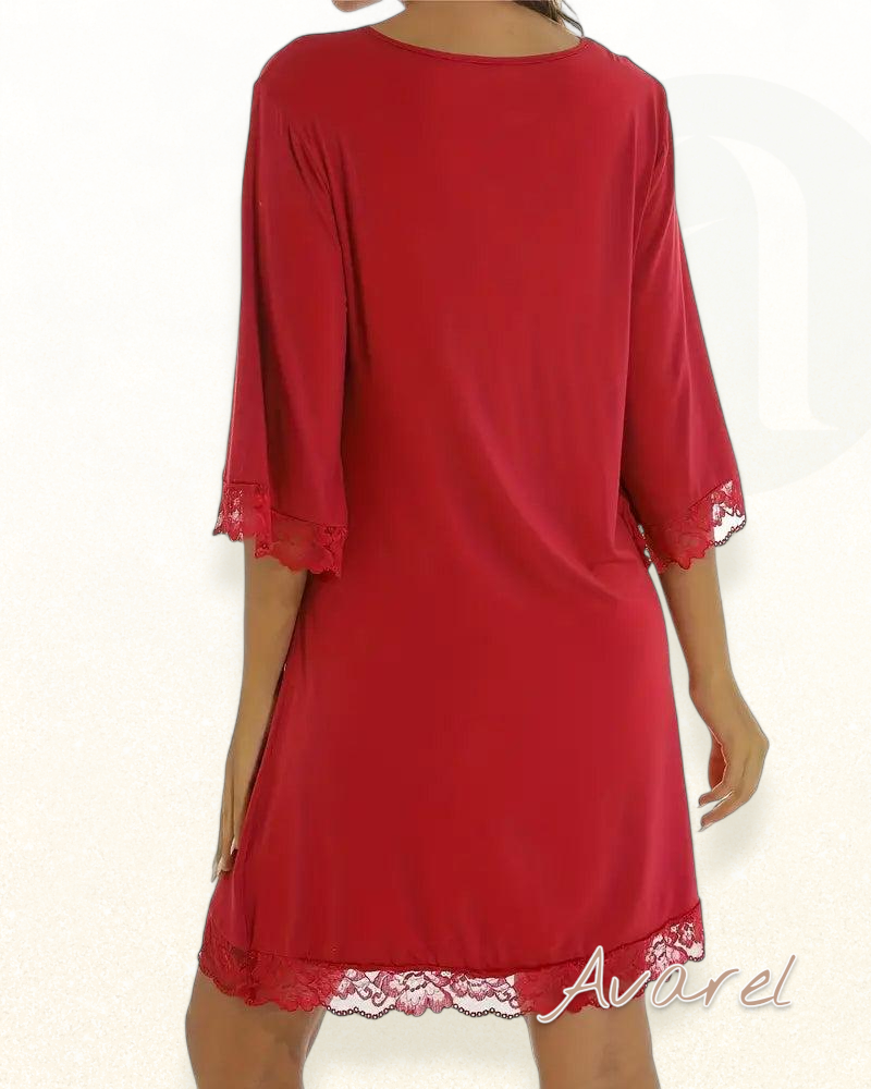 Elegantes V-Ausschnitt Kleid mit verführerischem Spitzen-Einsatz für stilvolle Auftritte