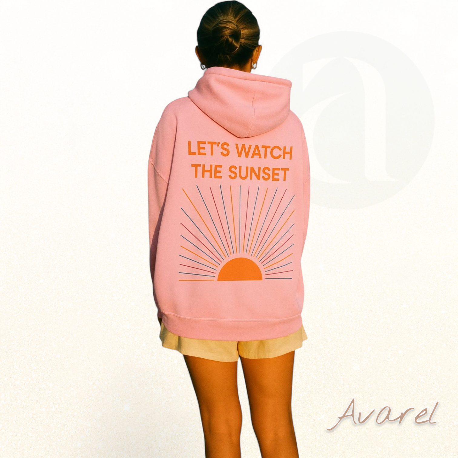 🌅 Ä Inspirations-Touch: Mit dem aufmunterende "Let's watch the sunset" Print chunsch zur Ruä und gniesch d'ruhige Momänt vom Läbe.