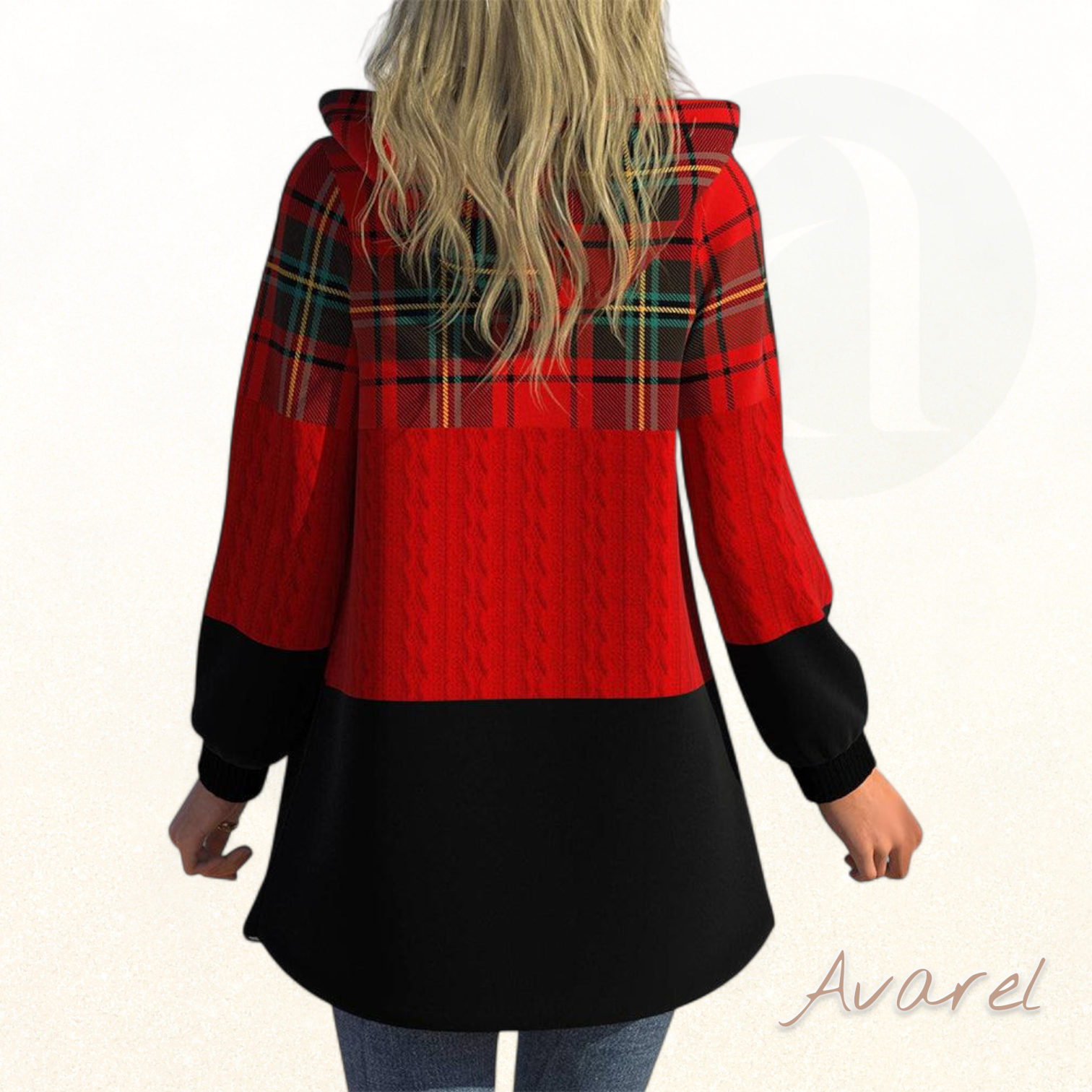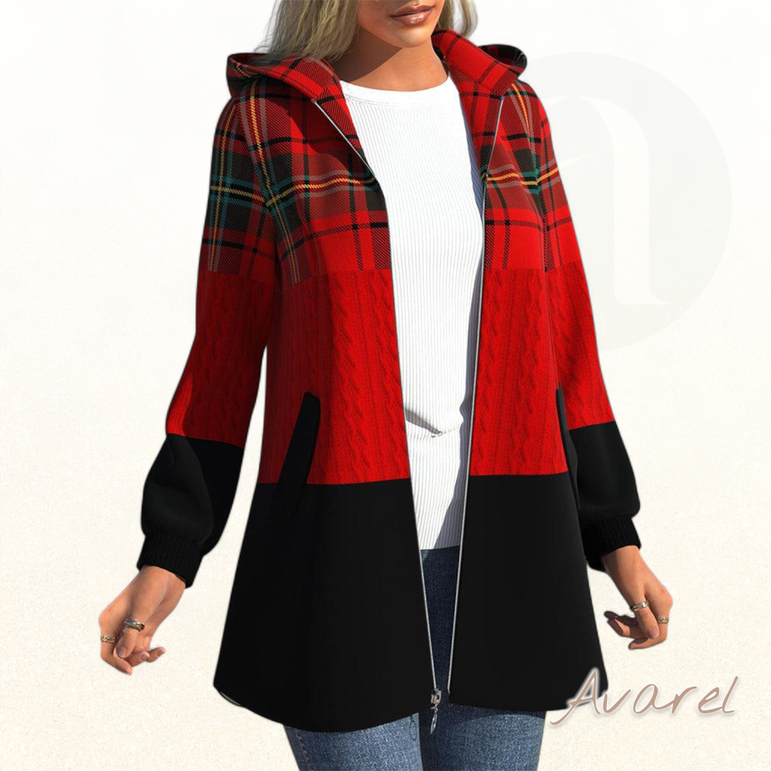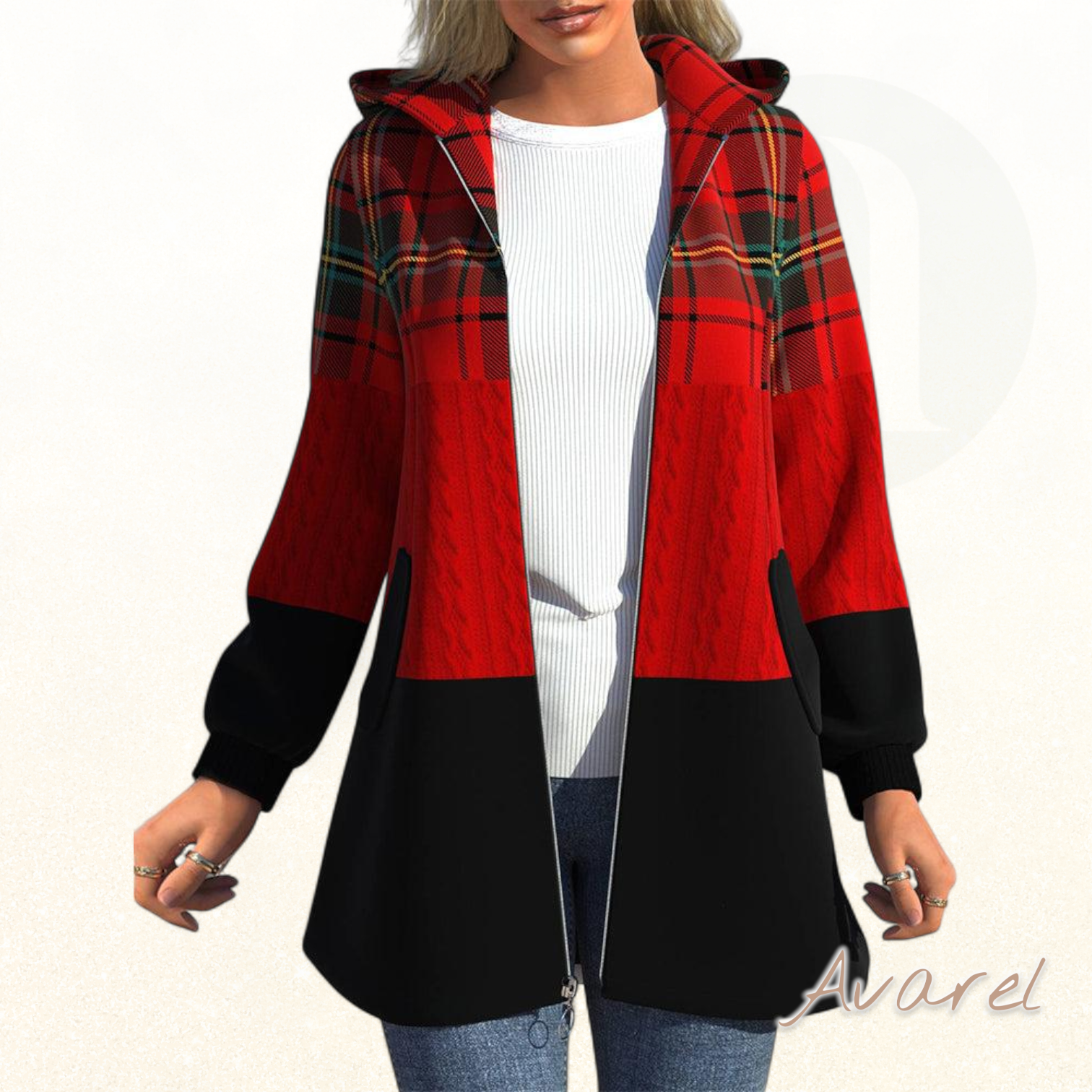 Modischer Karo-Hoodie-Mantel mit praktischem Reissverschluss