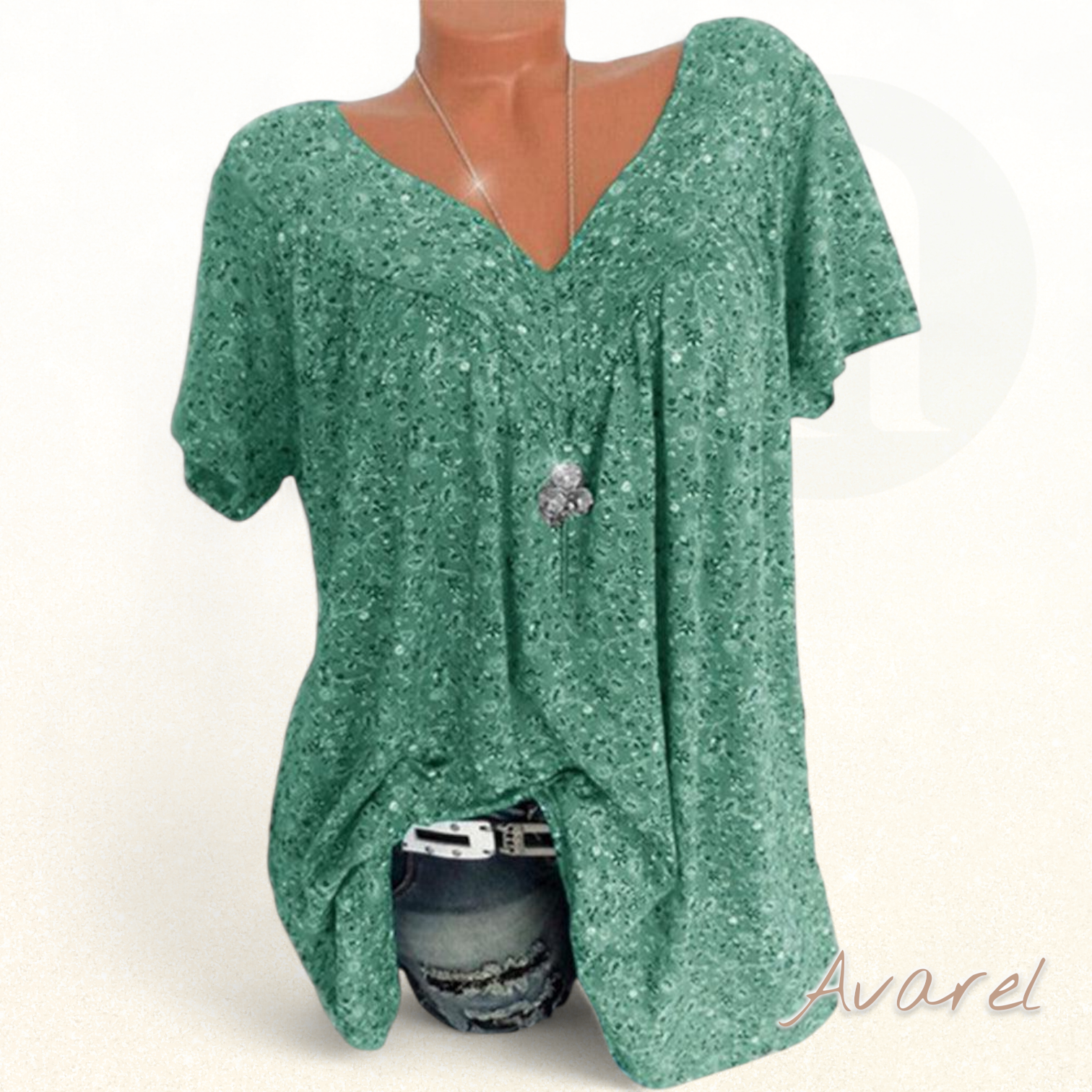 🎨 Stylische Drück: Mit eme trendige Print und modernem V-Ausschnitt wirkt das Shirt locker und isch immer e Hingucker.