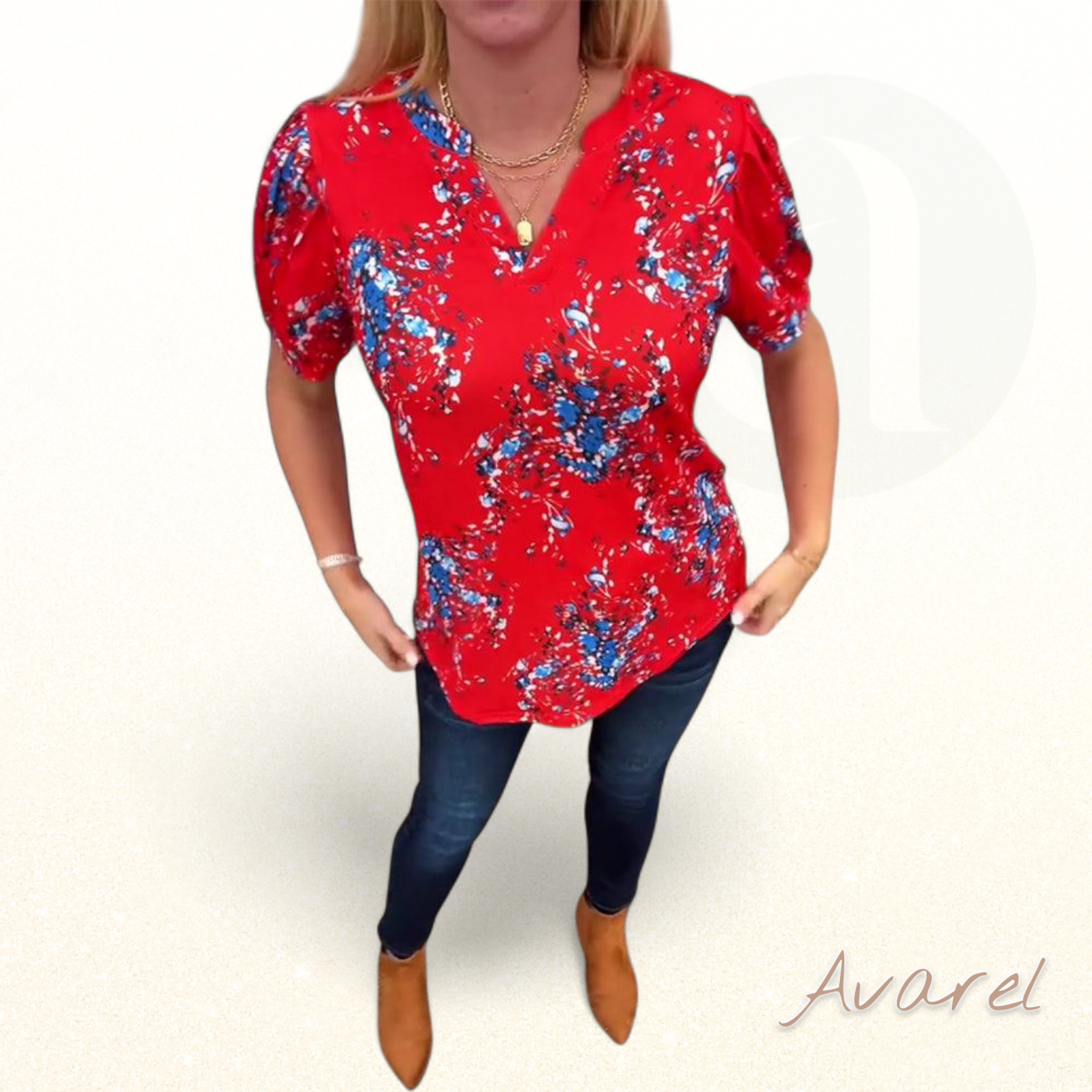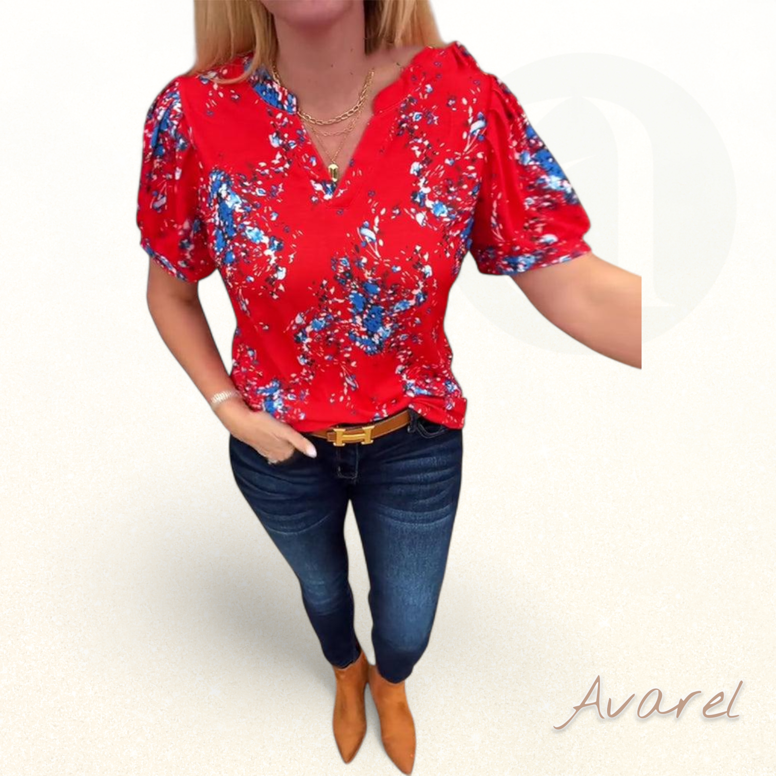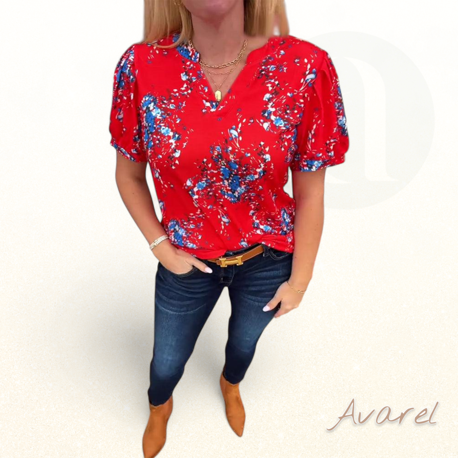 Stilvolle Damen T-Shirt mit V-Ausschnitt und Blümchenmuster, Kurzarm perfekt für de Sommer