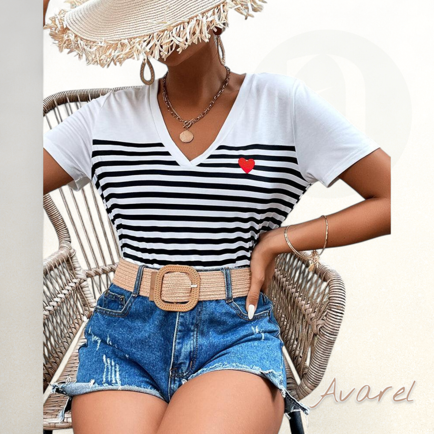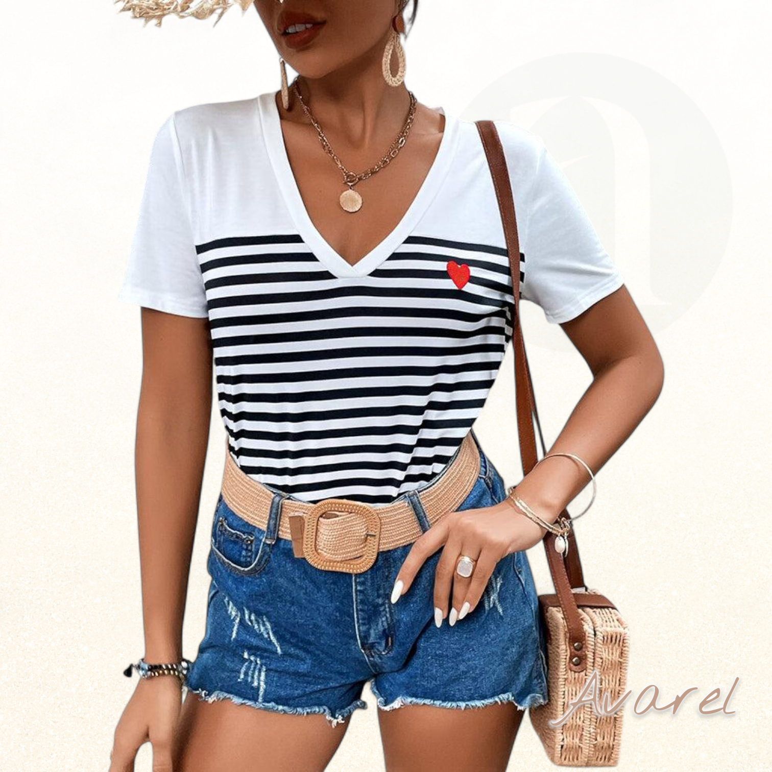 T-Shirt mit V-Ausschnitt und Streifenmuster – Perfekt für jeden Anlass